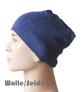 Nachtmütze für Herren, besonders weich und warm in einem tollen Materialmix aus Wolle und Seide.