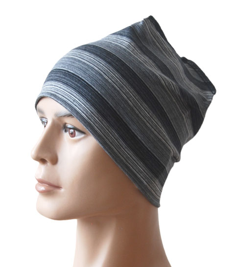 Standard Nachtmütze aus Baumwolle in grau gestreift für Herren.